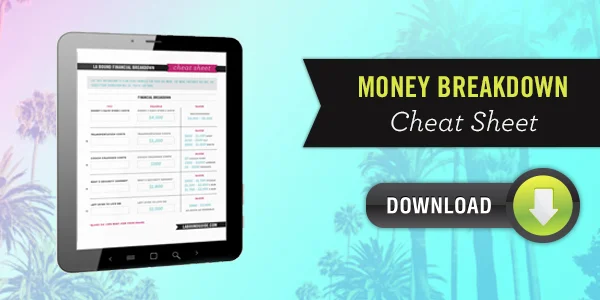 Download your free LA Money Breakdown cheat sheet and start calculating your own numbers. I swear, when it’s on paper, it’s not as scary. Can you tell that my goal is to make things easy peasy for you?